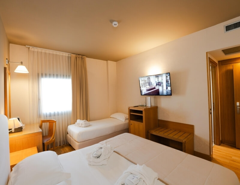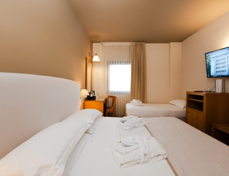 Rooms of 19 m² with parquet or wooden floor and a private bathroom with a window. The room presents a double bed and a single extra bed to host up to 3 people.