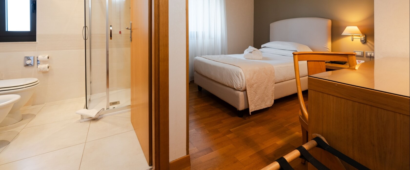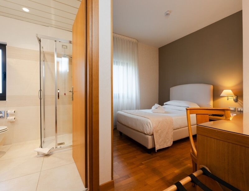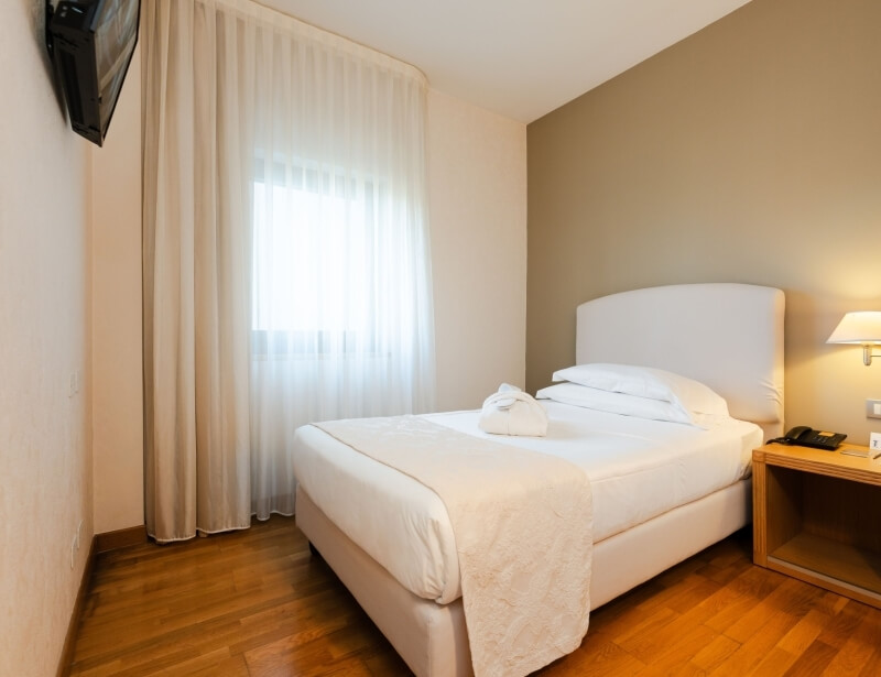 The single room offers air conditioning, free Wi-Fi connection, flat-screen TV with satellite channels, minibar, hairdryer and courtesy kit.